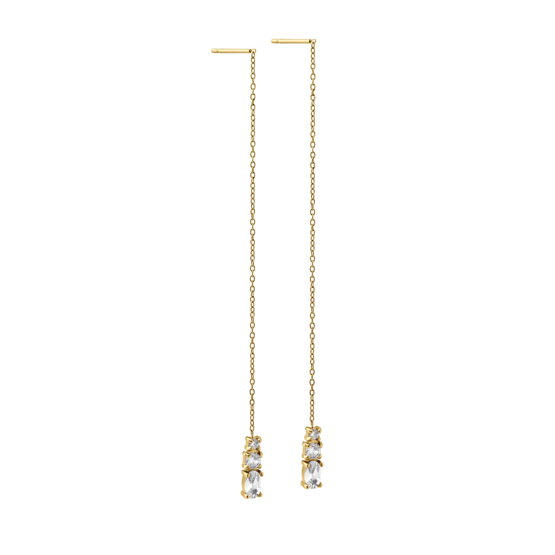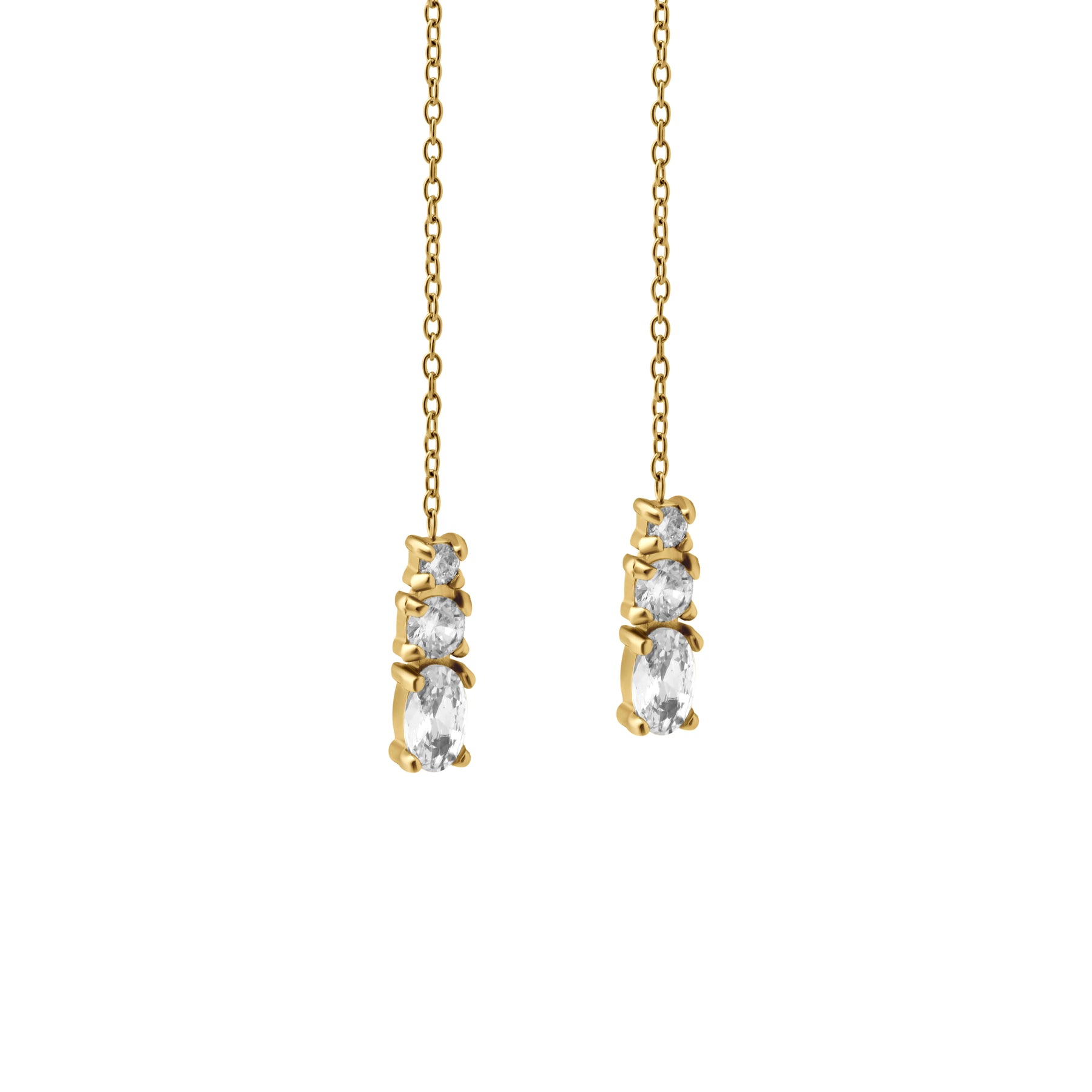 Three glittering zirconias are stacked at the end of a fine, flexible threader chain. Whether you wear them long or looped through multiple piercings, the Aurelia Threaders are exactly what your ears have been missing.