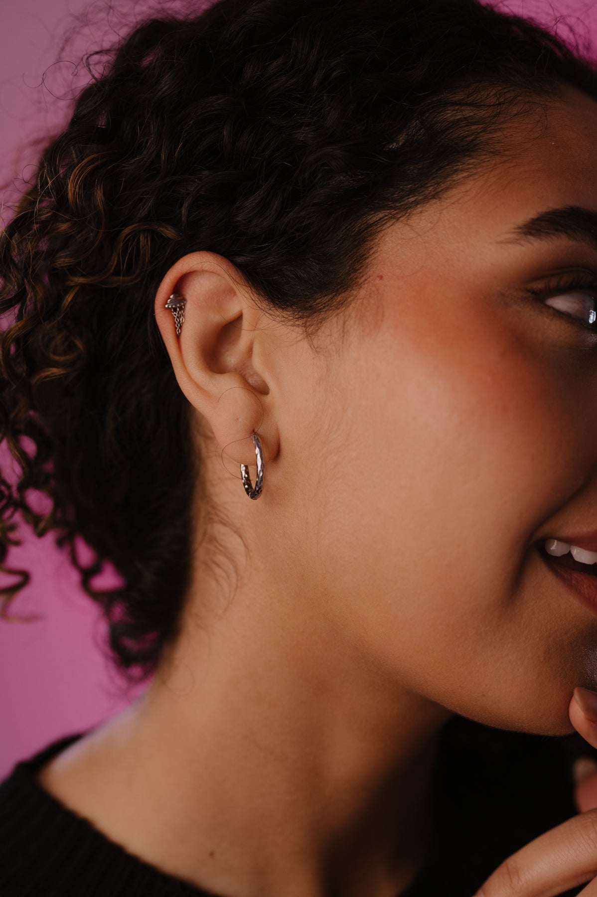 Please be aware that with clicker style hoops such as this, sometimes the post that goes through the ear can get bumped slightly, reducing the secure click to close them. Please verify how these earrings will fit prior to wearing them and make sure to adjust the ear post slightly by pushing up or down on it, as needed until you hear a click (meaning that your earrings will stay shut!)