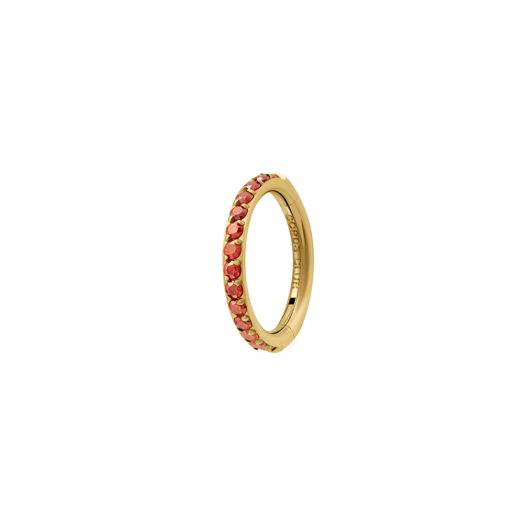 Your go-to minimal hoop, with a pop of deep red. These 18g clicker hoops are crafted from implant-grade titanium and lined on one side with garnet-toned CZs. Available in three sizes so you can mix, match, and fit your own unique ear and nose anatomy.