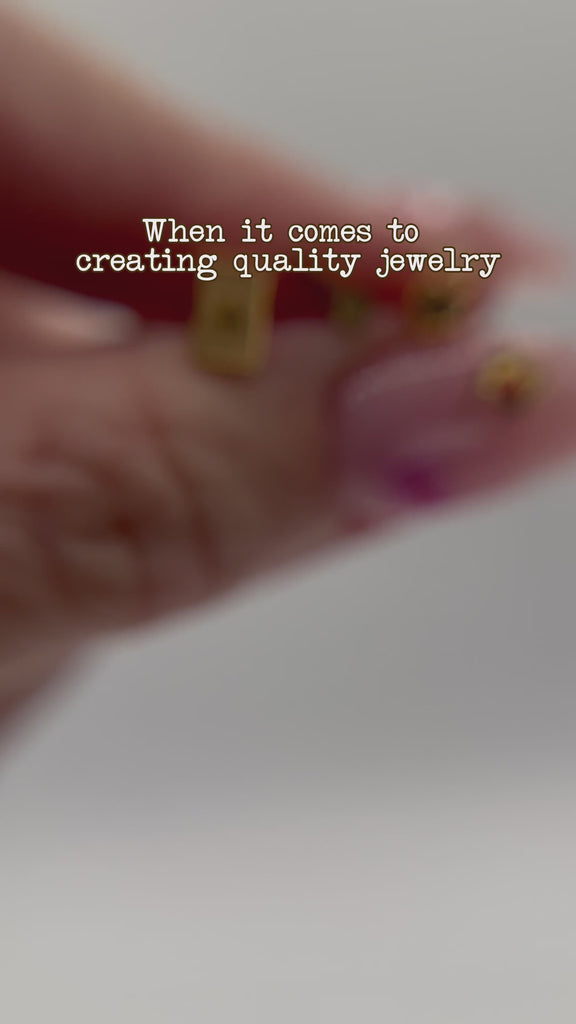 Care: Water and tarnish proof with proper care. If exposed to salt water, chlorine, or lotions/perfumes, rinse off with cool water and gently dry. When not wearing, store in a dry, cool place. Do not pull, twist, or tug on your jewelry.
