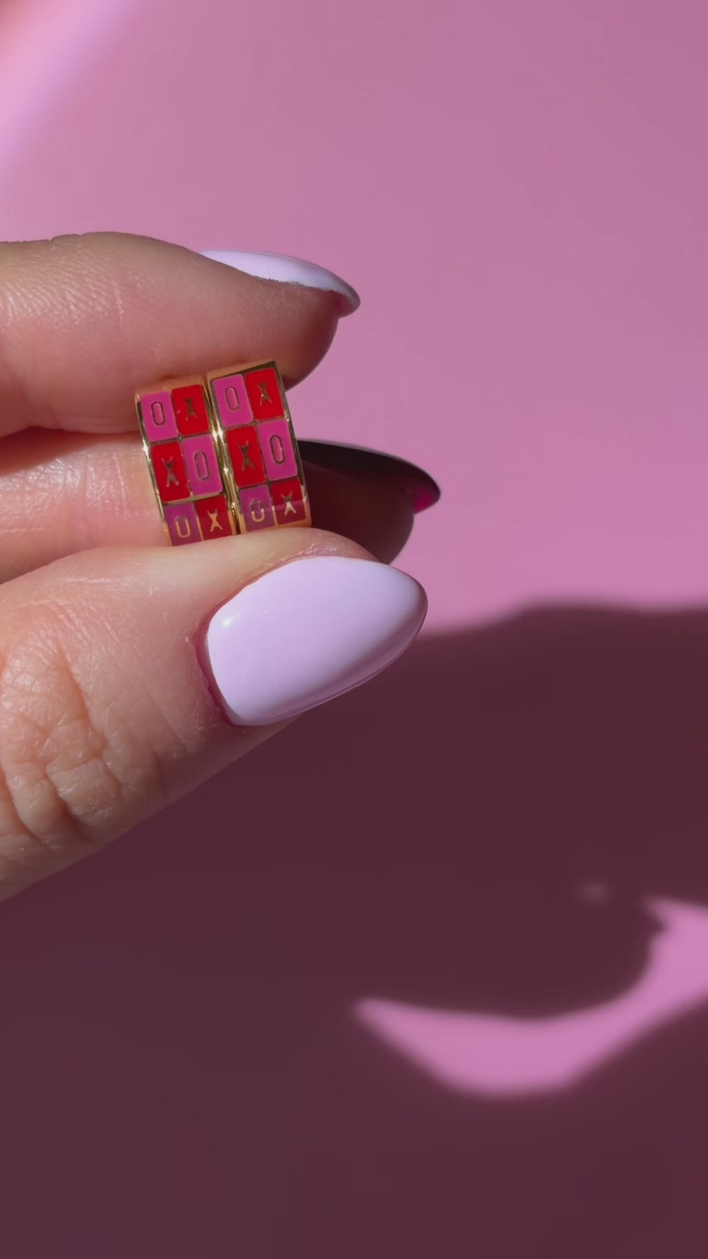 Hugs and kisses, all wrapped up. The XO Titanium Hoops feature a juicy red and pink enamel checkered pattern that brings a sweet Valentine touch to a comfy huggie silhouette. Lightweight, easy to wear, and made for everyday love.